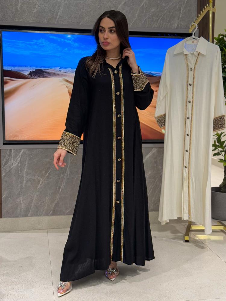 جلابيات نسائيه خليجيه رمضانية مميزه كتان بتطريز نمري مزين بالفصوص ولولو راقي وبتفاصيل انيقة تضفي لمسة من الجمالية على الجلابية تصميم حديث من براند سين فاشن تتناسب الجلابية جميع المناسبات الخاصة التي ترغبين في أن تبرزي فيها أناقتك و انوثتك.