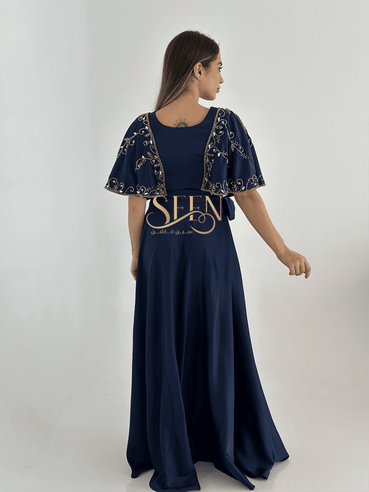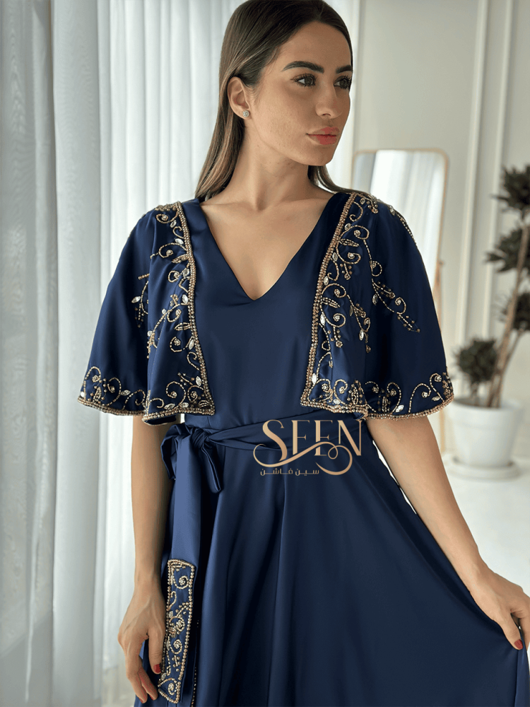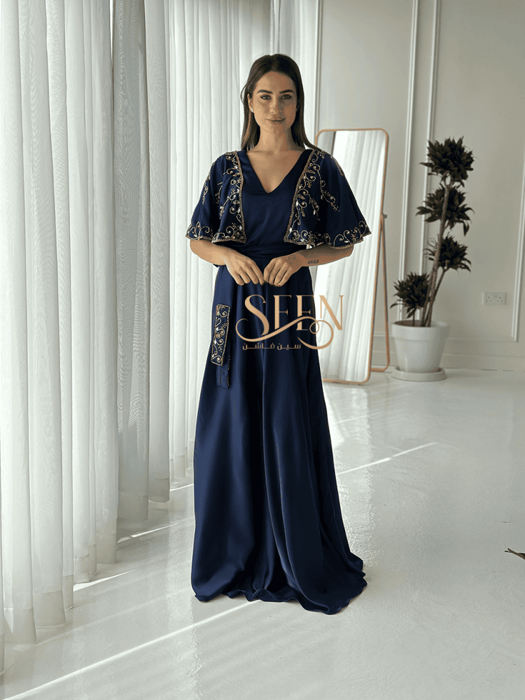 جلابيه كحلي نسائية باللون الكحلي بتطريز راقي وبتفاصيل انيقة يعزز التطريز باللون الذهبي جمال التصميم و يضفي لمسة من الجمالية على الجلابية