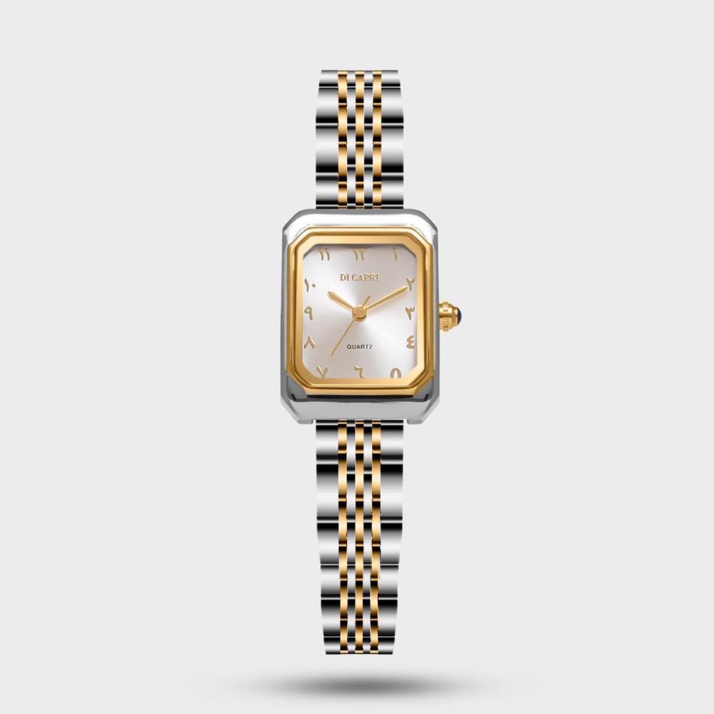 ساعة نسائية مستطيلة الشكل تتميز بأناقتها وفخامتها. الساعة مصنوعة من الاستيل المقاوم للصدأ ، مما يمنحها مظهرًا أنيقًا ومتينًا . تتوفر في مجموعة متنوعة من الألوان والتصاميم لتناسب ذوق كل امرأة. تحتوي الساعة على مينا مزينة بالارقام العربية الراقية لإضافة لمسة من الفخامة والأناقة. ساعة مستطيلة الشكل تعتبر خيارًا رائعًا للنساء اللواتي يبحثن عن تصميم كلاسيكي وأنيق يبرز جمالهن بأناقة.