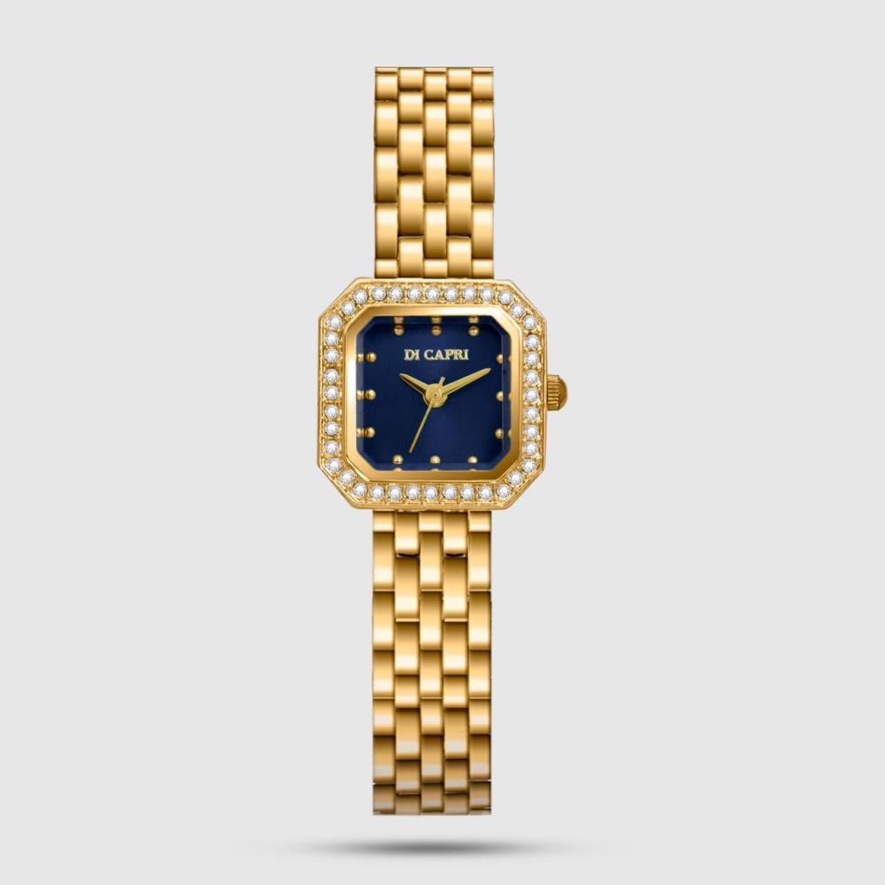 - ساعة نسائية بسير من الستيل باللون الذهبي يتزين بفصوص الزركون