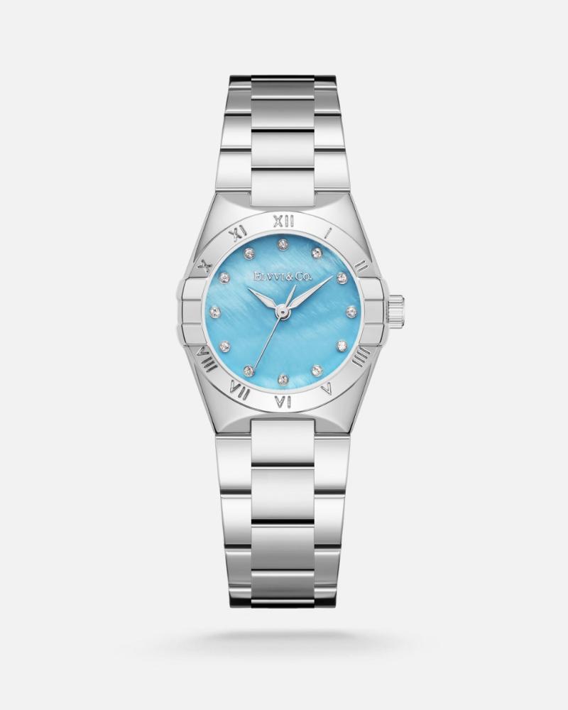 - ميناء الساعة الانيق و الملف للنظر بتفاصيل باللون السماوي