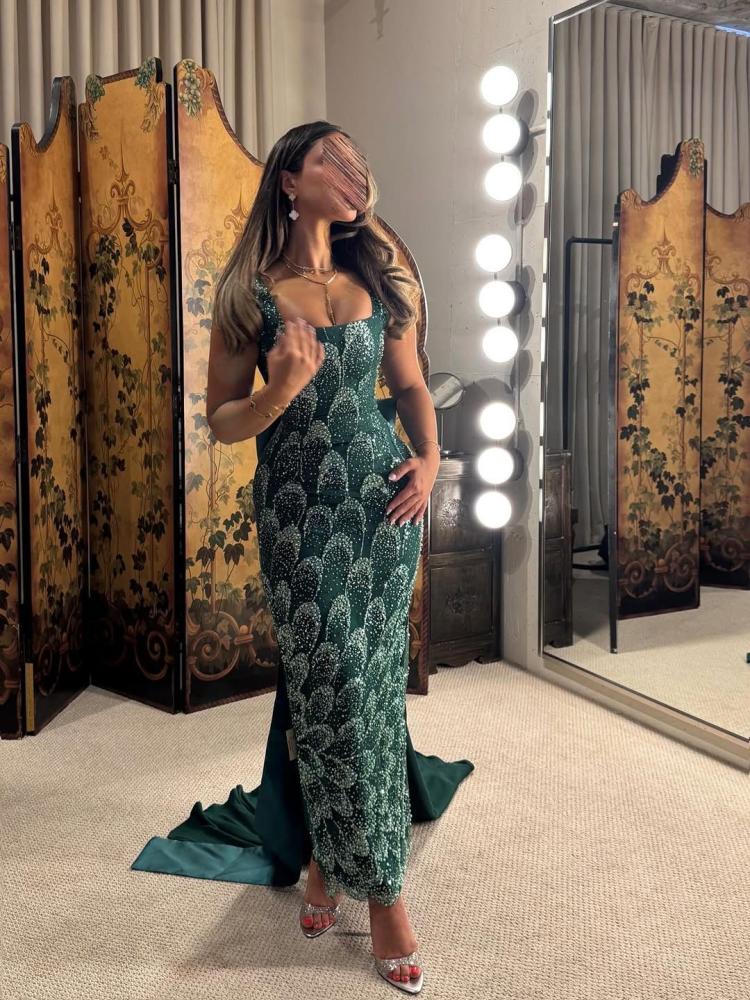 فستان سهرة أخضر–فستان أخضر طويل–فساتين مطرزة كريستال–فساتين فخمة–فستان مناسبات راقية–فستان خطوبة أخضر–فساتين سواريه فخمة–فساتين سهرة فخمة.