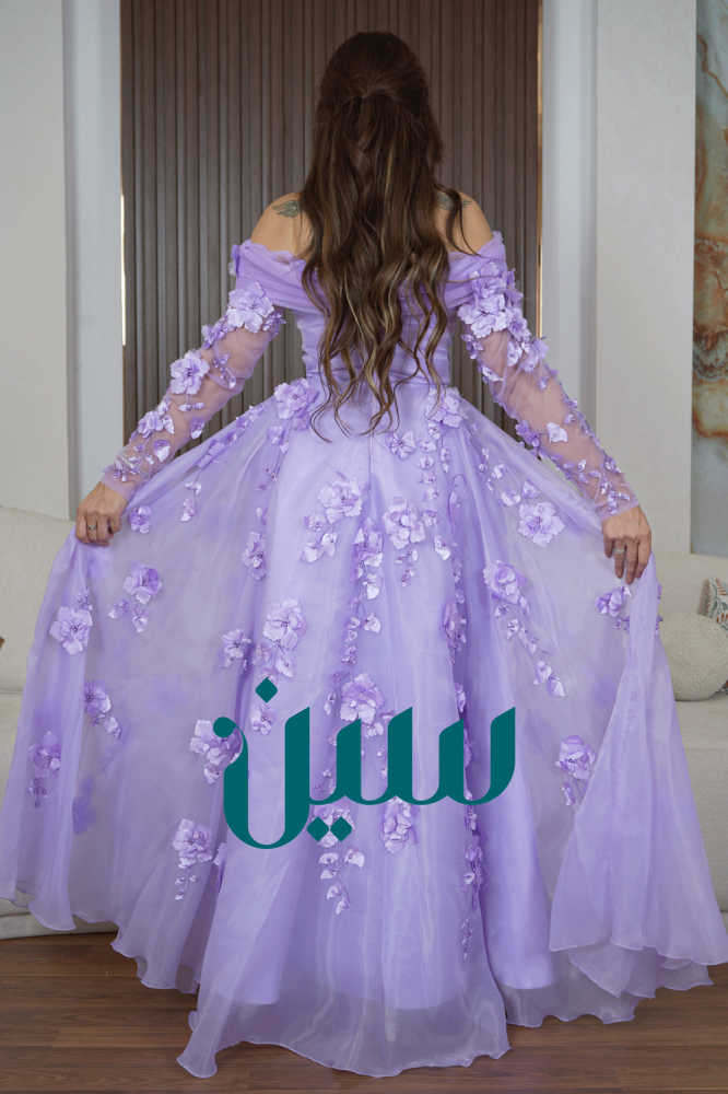 - اللون : يتميز الفستان باللون الموف مما يضفي عليه جاذبية وأناقة فريدة .