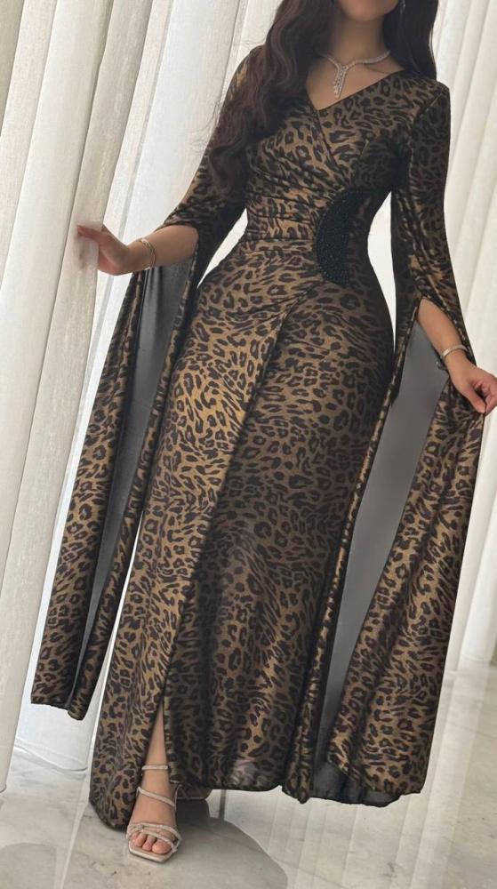 فستان نسائي أنيق بتصميم تايجر استرتش عالي الجودة باكمام طويلة يضفي لمسة من الفخامة و الجمال