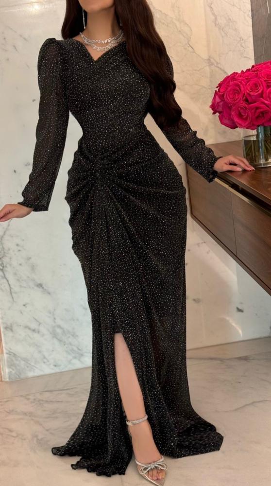 فستان نسائي سهرة أنيق باللون الاسود مصنوع من قماش الترتر عالية الجودة فستان يلمع بكل حركة مميز و انيق يضفي لمسة من الفخامة و الجمال
