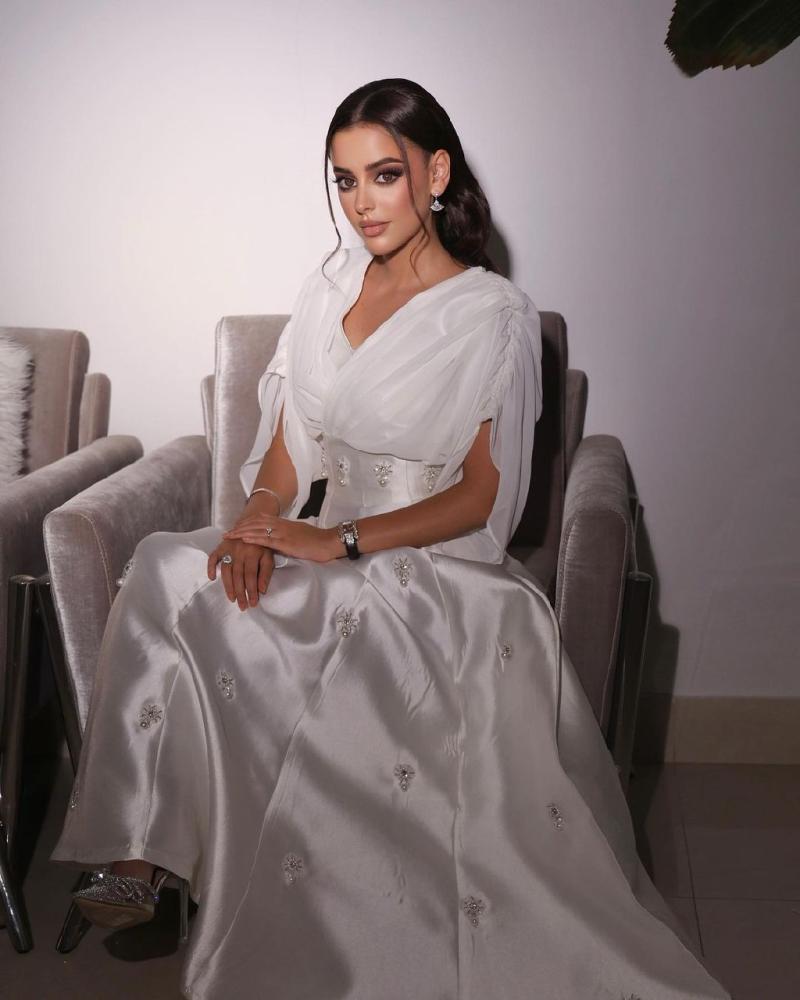 فستان سهرة فخم وراقي ومميز بتطريز انيق ليجعل الفستان يبدو أكثر اثارة و فخامة هذا الفستان مثالي للمناسبات الخاصة والسهرات الفاخرة.