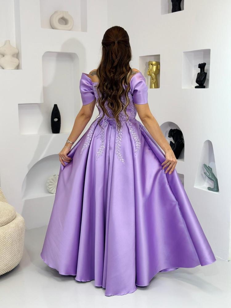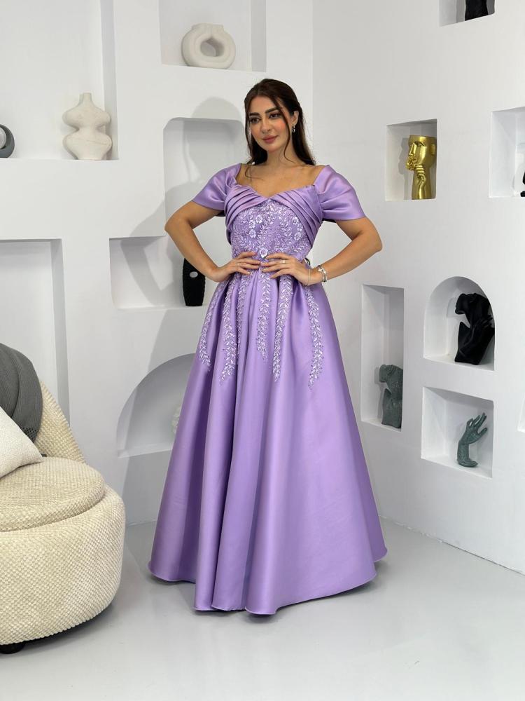 فستان سهرة فخم وراقي جذاب متوفر باللون الموف الراقي ليجعل الفستان يبدو أكثر اثارة و فخامة هذا الفستان مثالي للمناسبات الخاصة والسهرات الفاخرة.