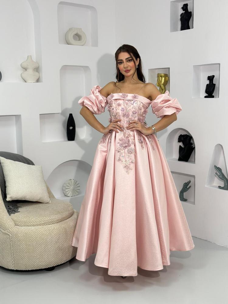 فستان سهرة فخم وراقي ومميز بتطريز انيق ليجعل الفستان يبدو أكثر اثارة و فخامة هذا الفستان مثالي للمناسبات الخاصة والسهرات الفاخرة.