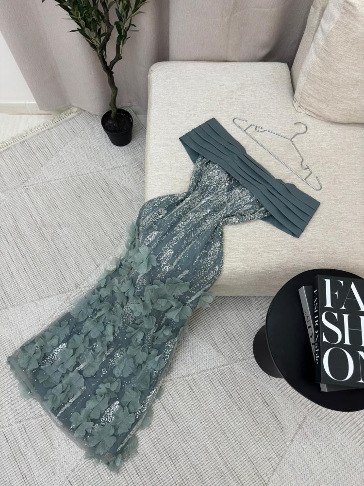فستان سهره نسائي راقي و جذاب ليجعل الفستان يبدو أكثر اثارة و فخامة هذا الفستان مثالي للمناسبات الخاصة والسهرات الفاخرة .