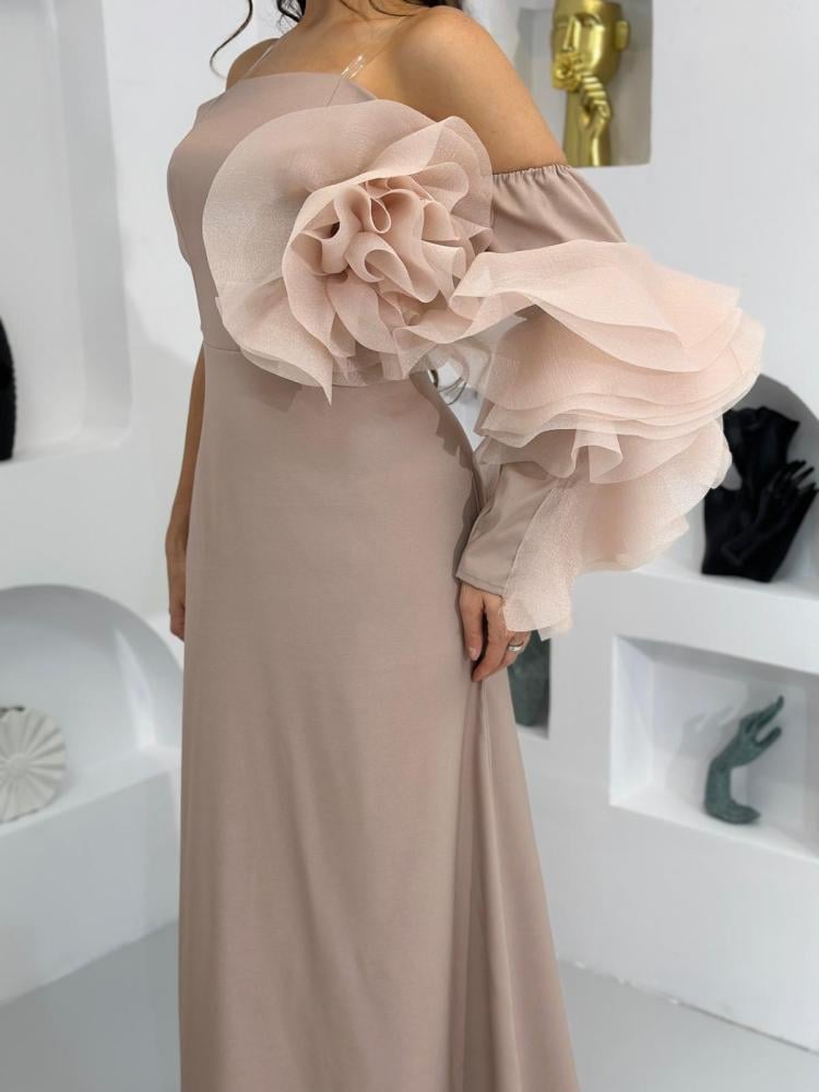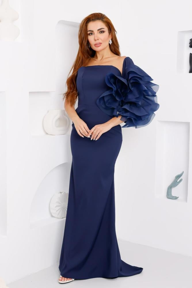 فستان ناعم فخم وراقي جذاب متوفر باللون الكحلي و البيج الراقي ليجعل الفستان يبدو أكثر اثارة و فخامة هذا الفستان مثالي للمناسبات الخاصة والسهرات الفاخرة.