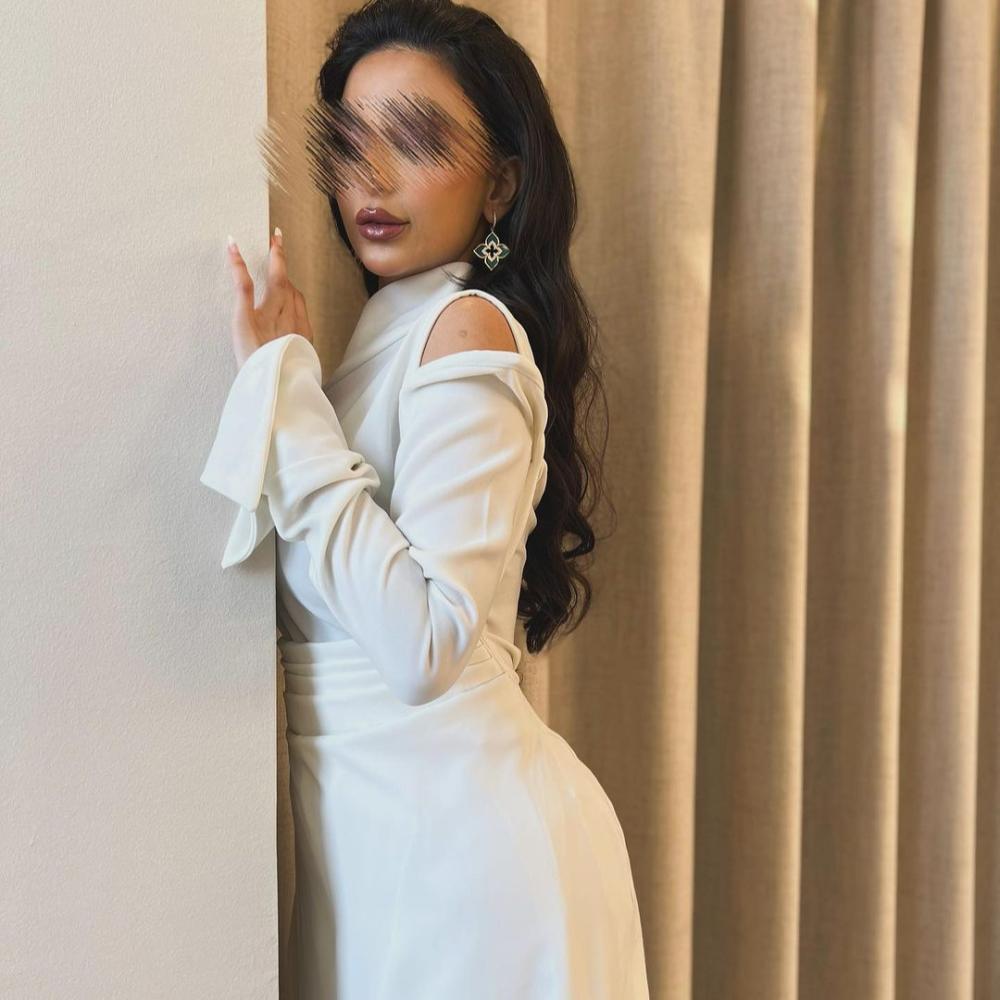 فستان ناعم ابيض تفته استرتش ليجعل الفستان يبدو أكثر اثارة و فخامة هذا الفستان مثالي للمناسبات الخاصة والسهرات الفاخرة.