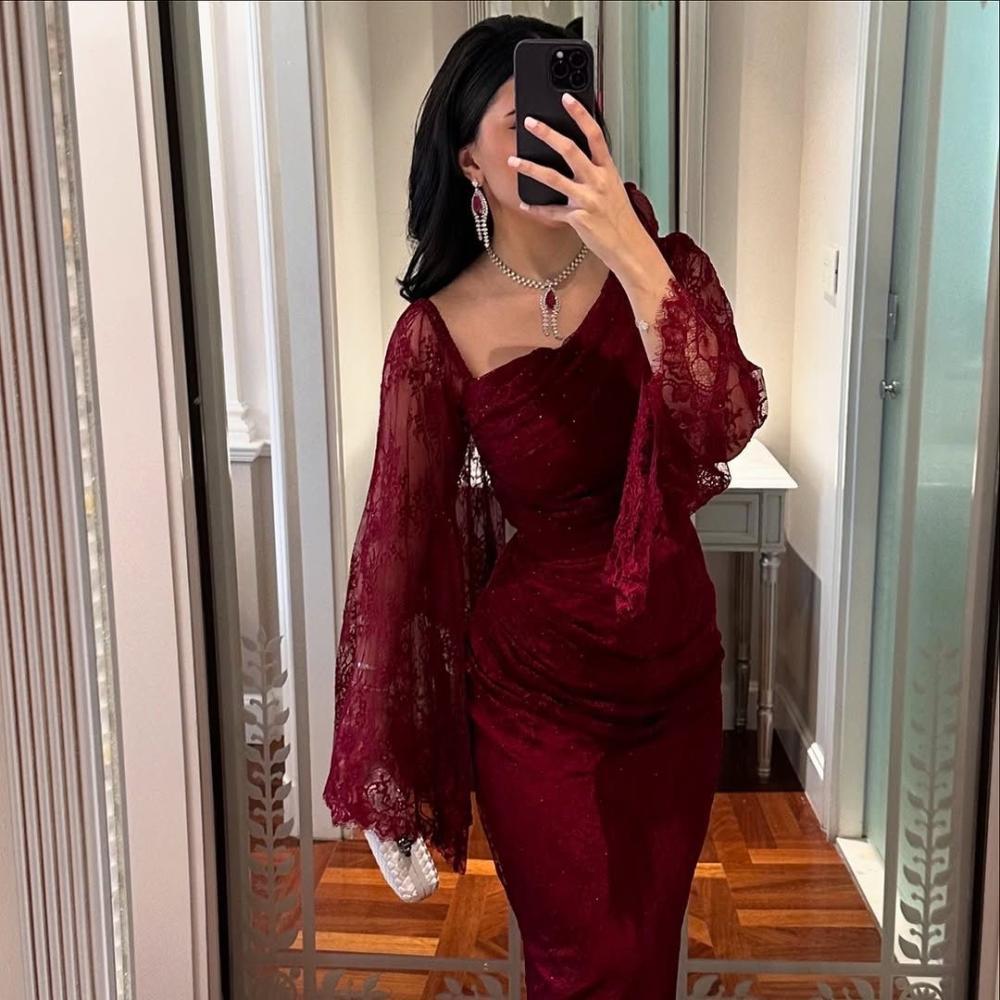 فستان نسائي دانتيل مزين بالفصوص ليجعل الفستان يبدو أكثر اثارة و فخامة هذا الفستان مثالي للمناسبات الخاصة والسهرات الفاخرة .