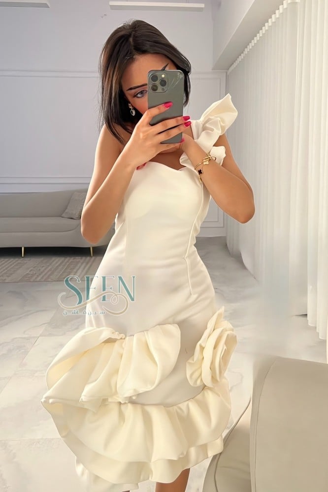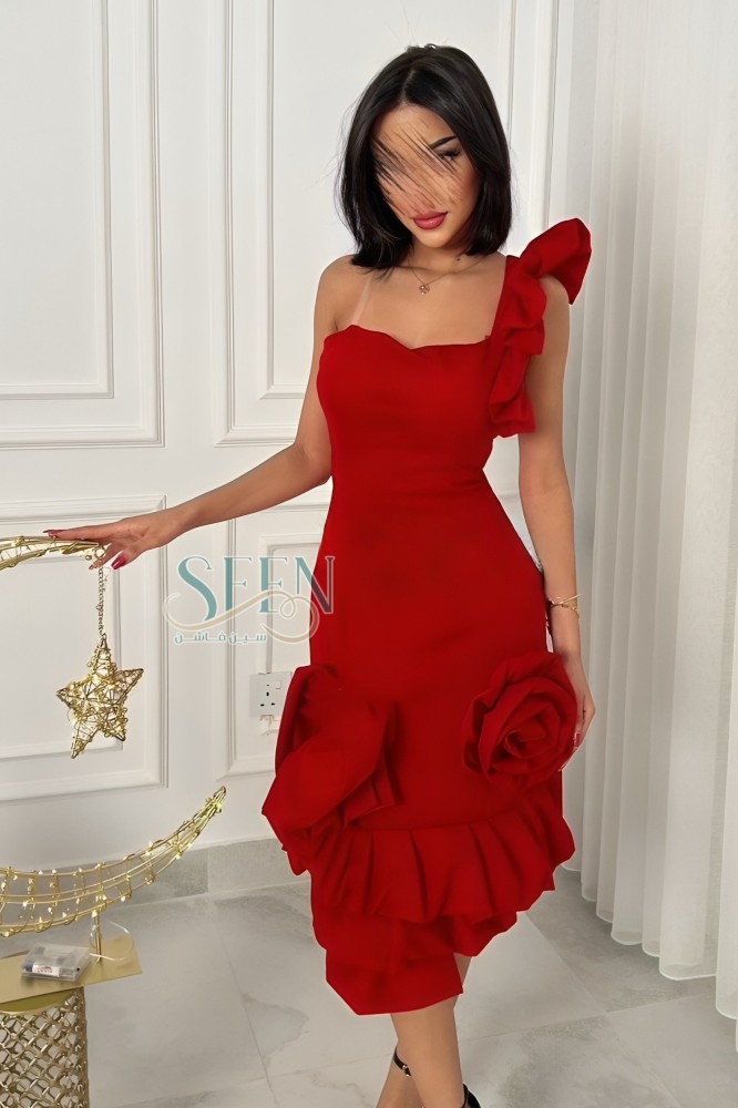 فستان سهرة ناعم وراقي جذاب متوفر بلونين سكري و احمر راقي ليجعل الفستان يبدو أكثر اثارة و فخامة هذا الفستان مثالي للمناسبات الخاصة والسهرات الفاخرة.