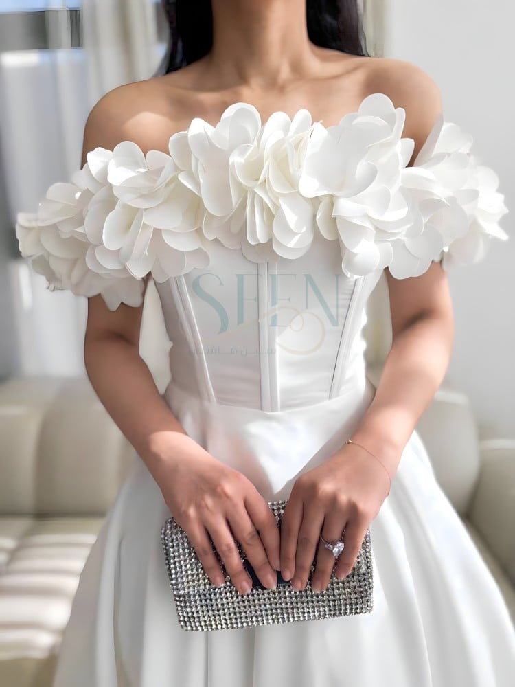 فستان سهرة ناعم وراقي جذاب متوفر بلون السكري ليجعل الفستان يبدو أكثر اثارة و فخامة هذا الفستان مثالي للمناسبات الخاصة والسهرات الفاخرة.