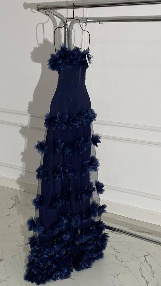 فستان سهره كحلي نسائي جذاب متوفر باللون الكحلي الراقي ليجعل الفستان يبدو أكثر اثارة و فخامة هذا الفستان مثالي للمناسبات الخاصة والسهرات الفاخرة .