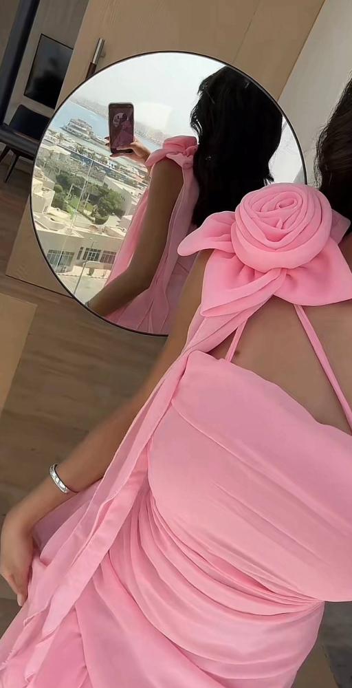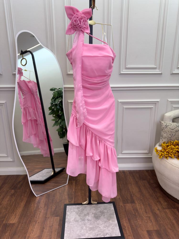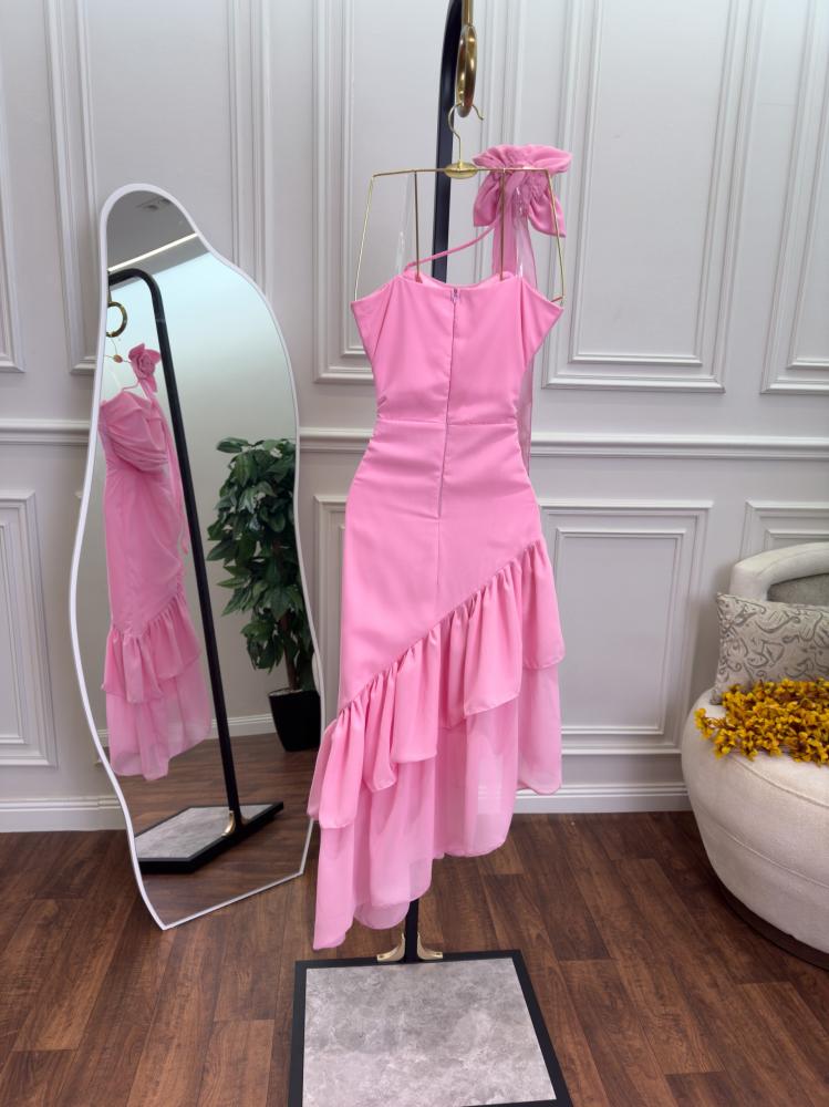 فستان ناعم نسائي باللون الفوشي مصنوع من قماش الشيفون لتجعل الفستان يبدو أكثر اثارة و فخامة هذا الفستان هو الخيار المثالي لمناسباتك حتى تبرزي فيها أناقتك و انوثتك .