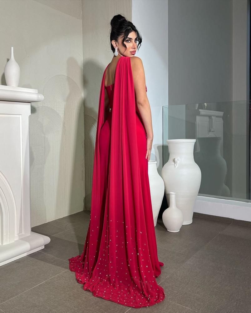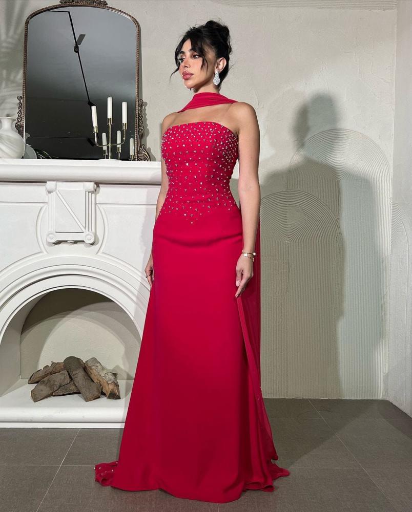 فستان نسائي راقي بتطريز يدوي كرستال ليجعل الفستان يبدو أكثر اثارة و فخامة هذا الفستان مثالي للمناسبات الخاصة والسهرات الفاخرة .