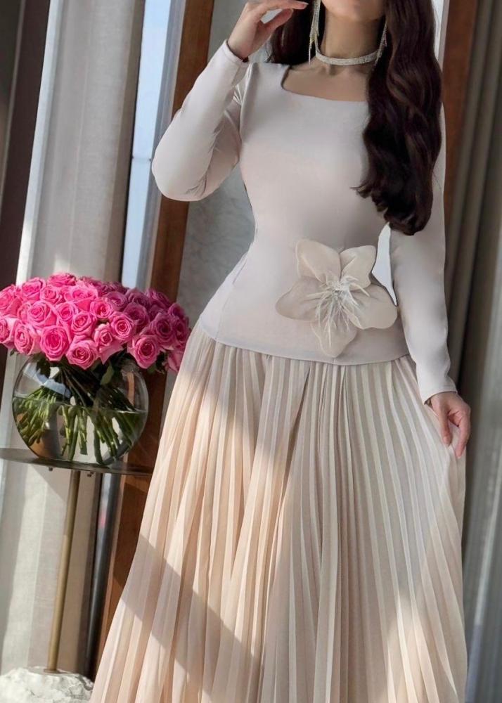 فستان الوردة باللون البيج