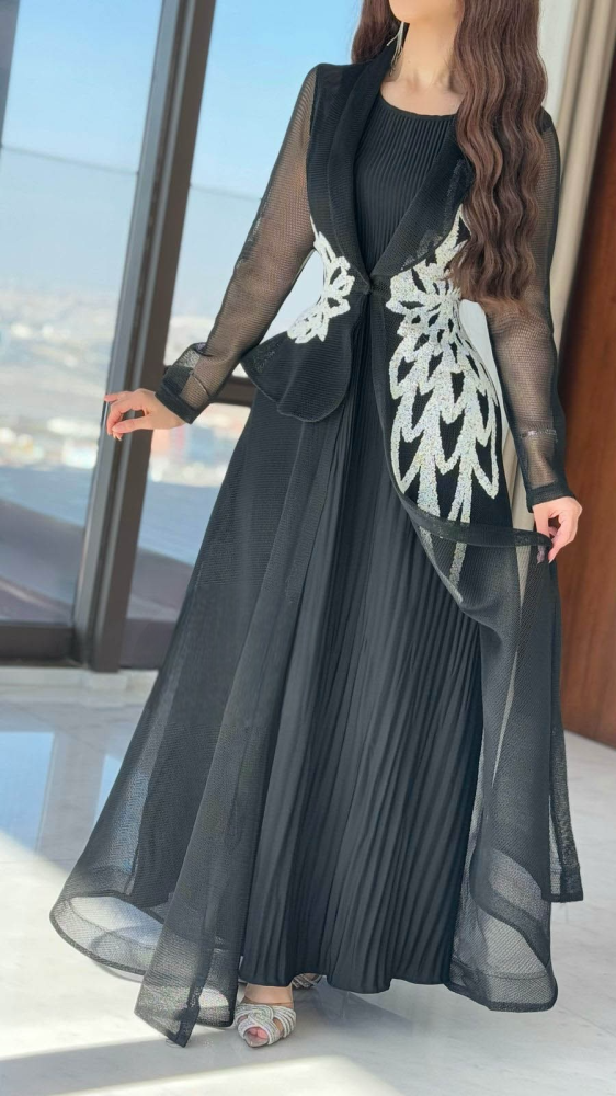 فستان اسود فخم بجاكيت مطرز